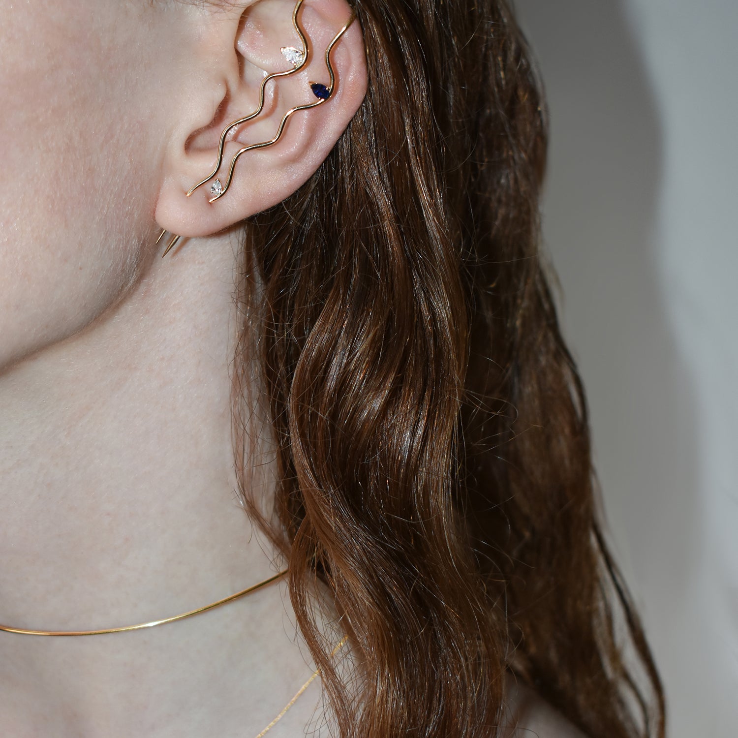 The Needle Earring is designed to create the illusion of multiple piercings while requiring only a single ear piercing. Each variation is meant to transform the ear, offering a bold yet wearable statement that defines LABULGARA’s sculptural approach to fine jewelry.
