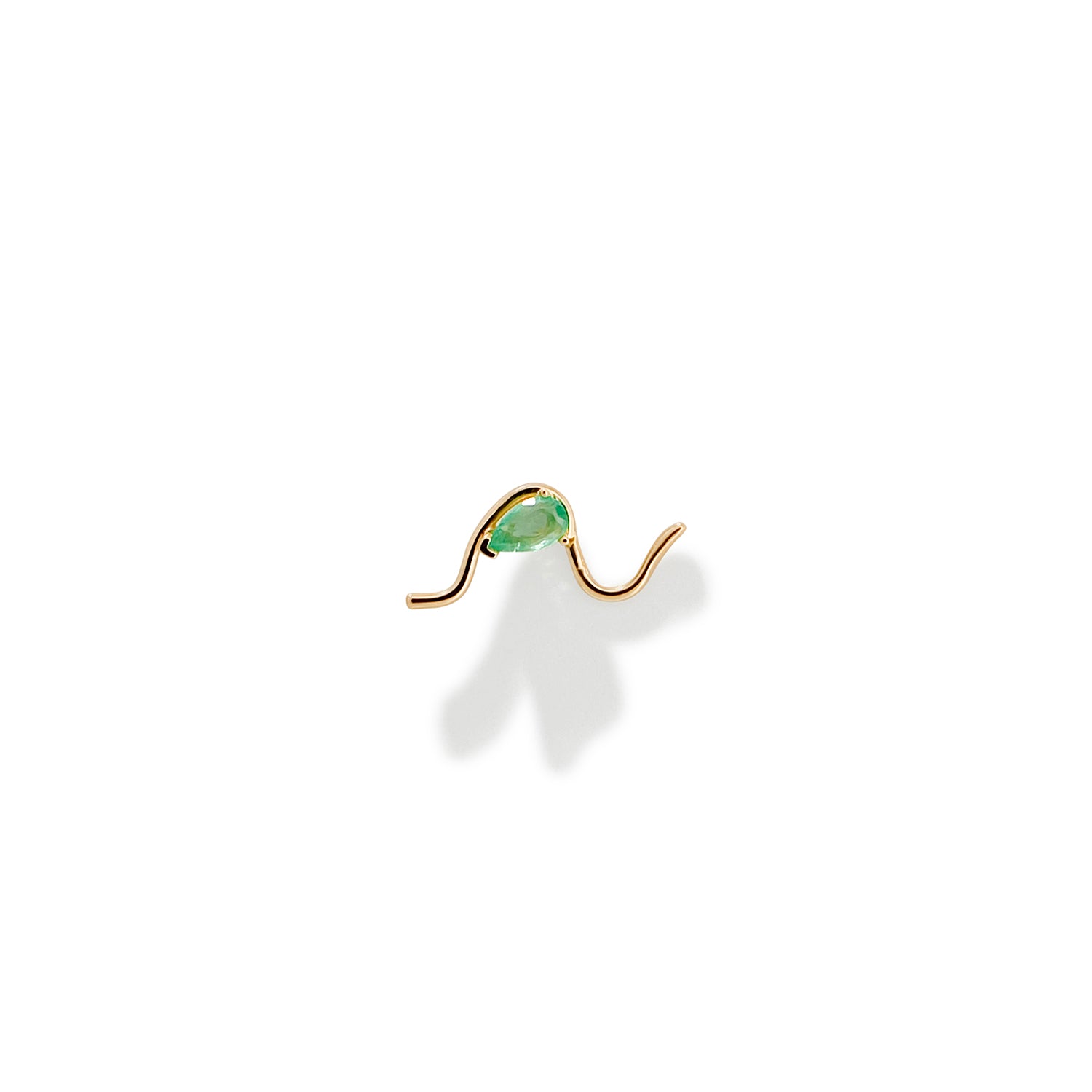 The Emerald Mumu Wave Stud Earring is comprised of 14k yellow gold wave with that cascades your ear lobe.