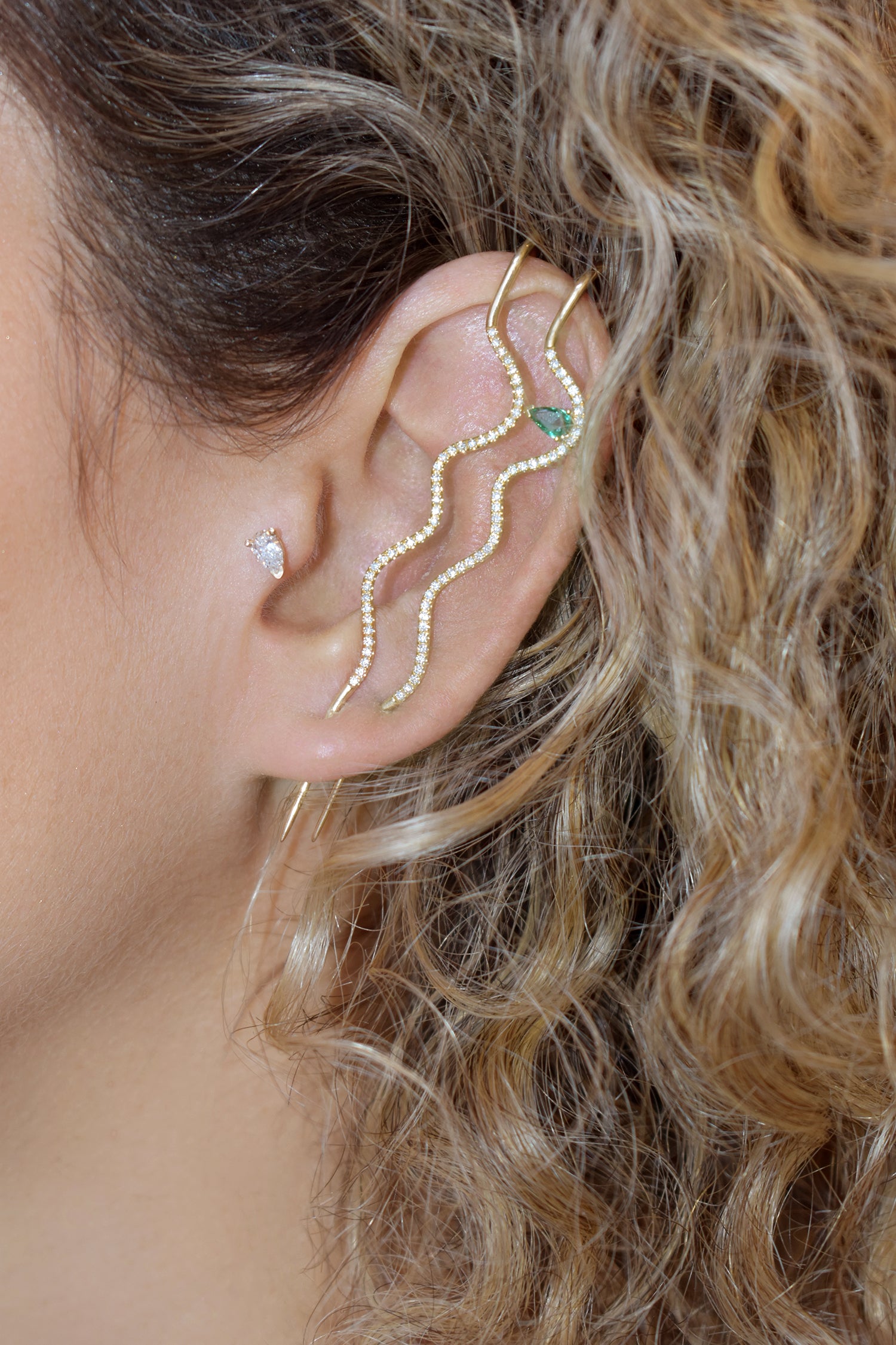 Thread the hook end through the ear lobe piercing and slide the earring allowing its hook part to cradle the top of your ear.