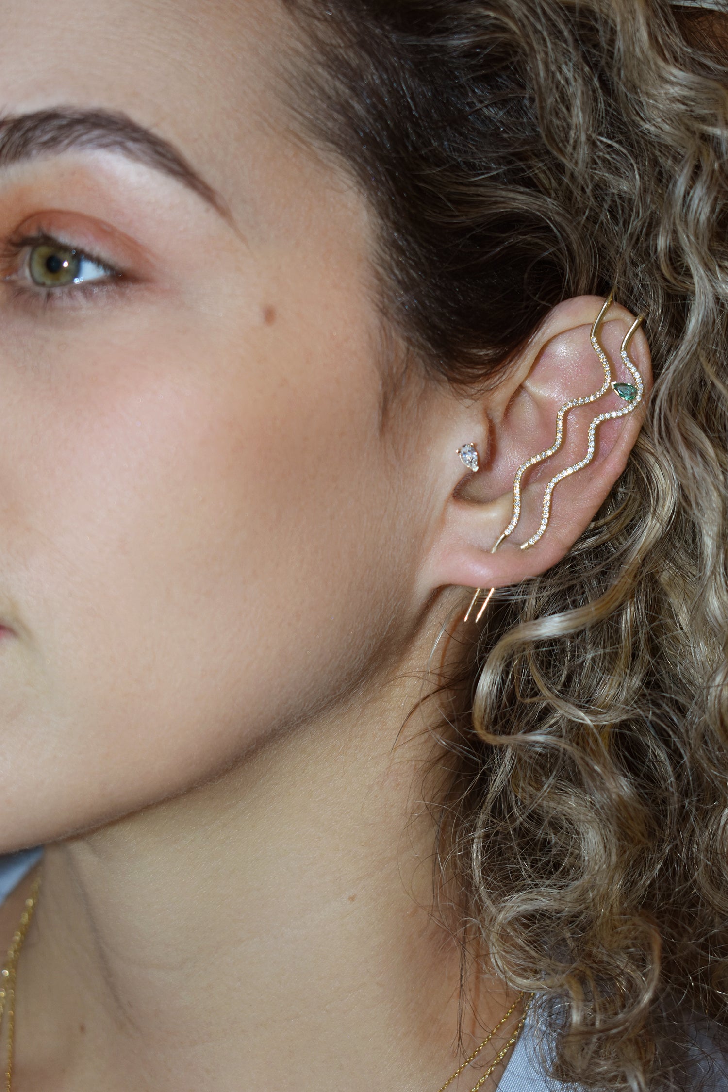 The Flat Back Large Ocean Tear Drop Stud is comprised of 14k yellow gold and a large tear drop shape diamond. Now available with a flat press fit back for a maximized comfortable wear.