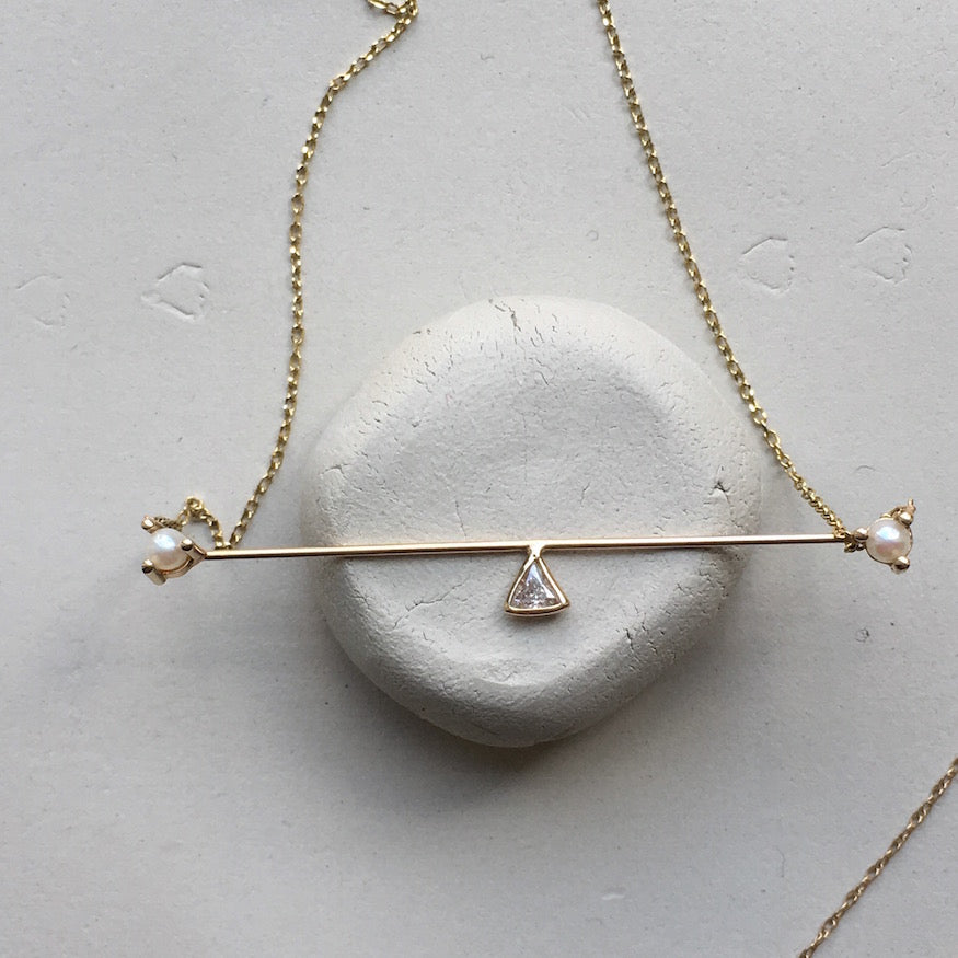 The Connected Pearls and Diamond Gold Necklace combines sophisticated luxury with contemporary edge in an unforgettable design. Crafted from gold and featuring elegant pearls and triangle shape diamond, this necklace exudes exclusivity and class. A timelessly beautiful piece that will elevate any wardrobe.