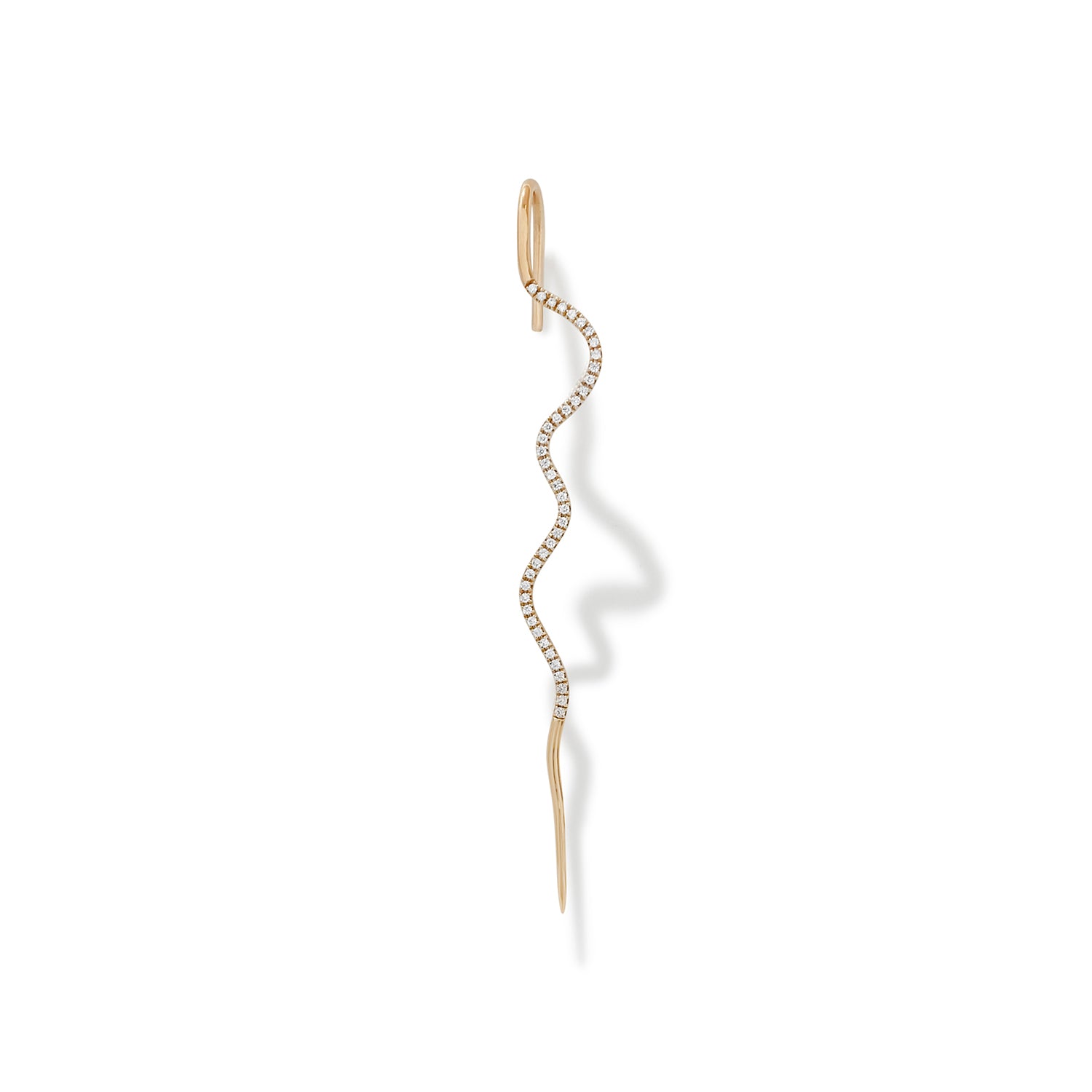 Thread the hook end through the ear lobe piercing and slide the earring allowing its hook part to cradle the top of your ear.