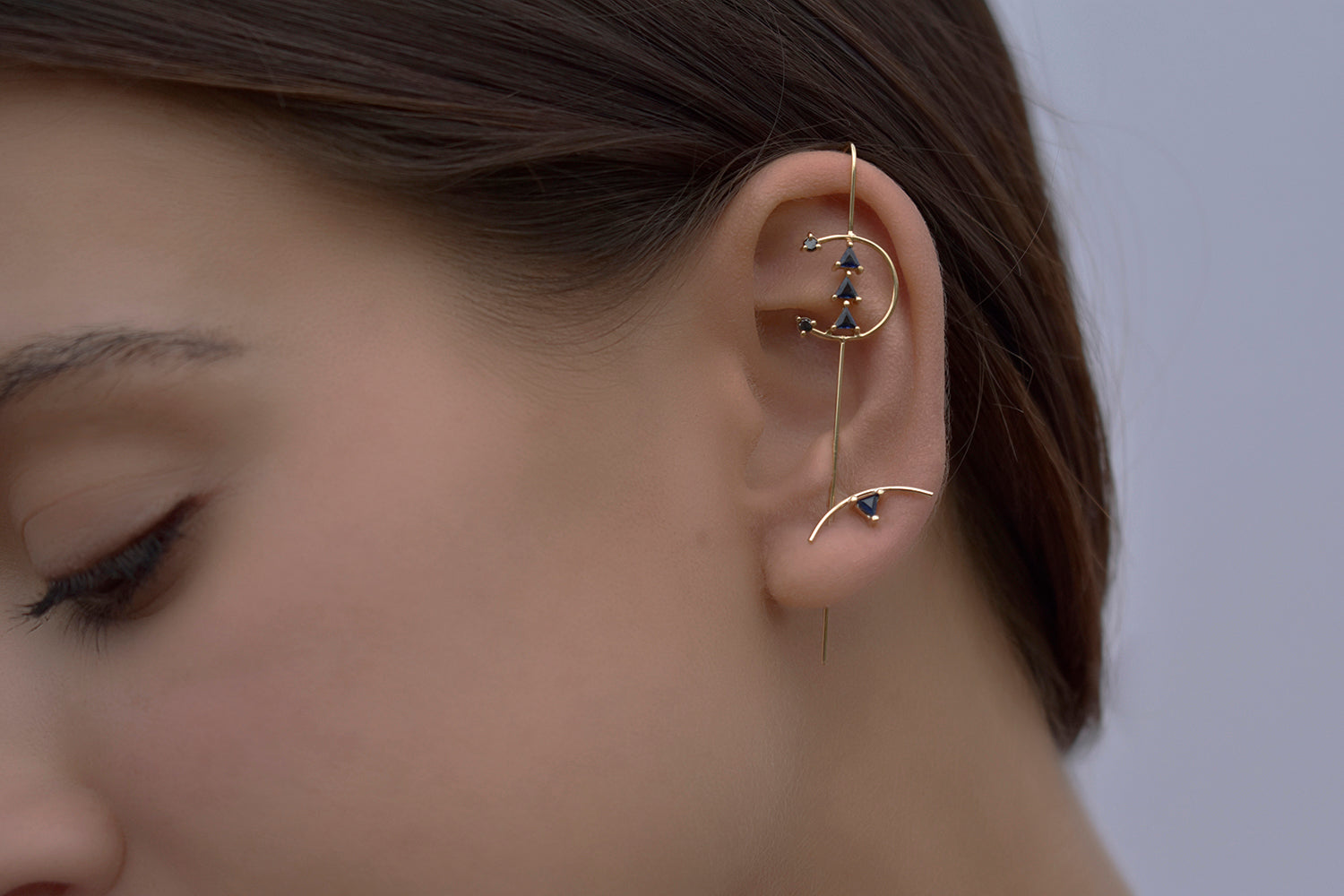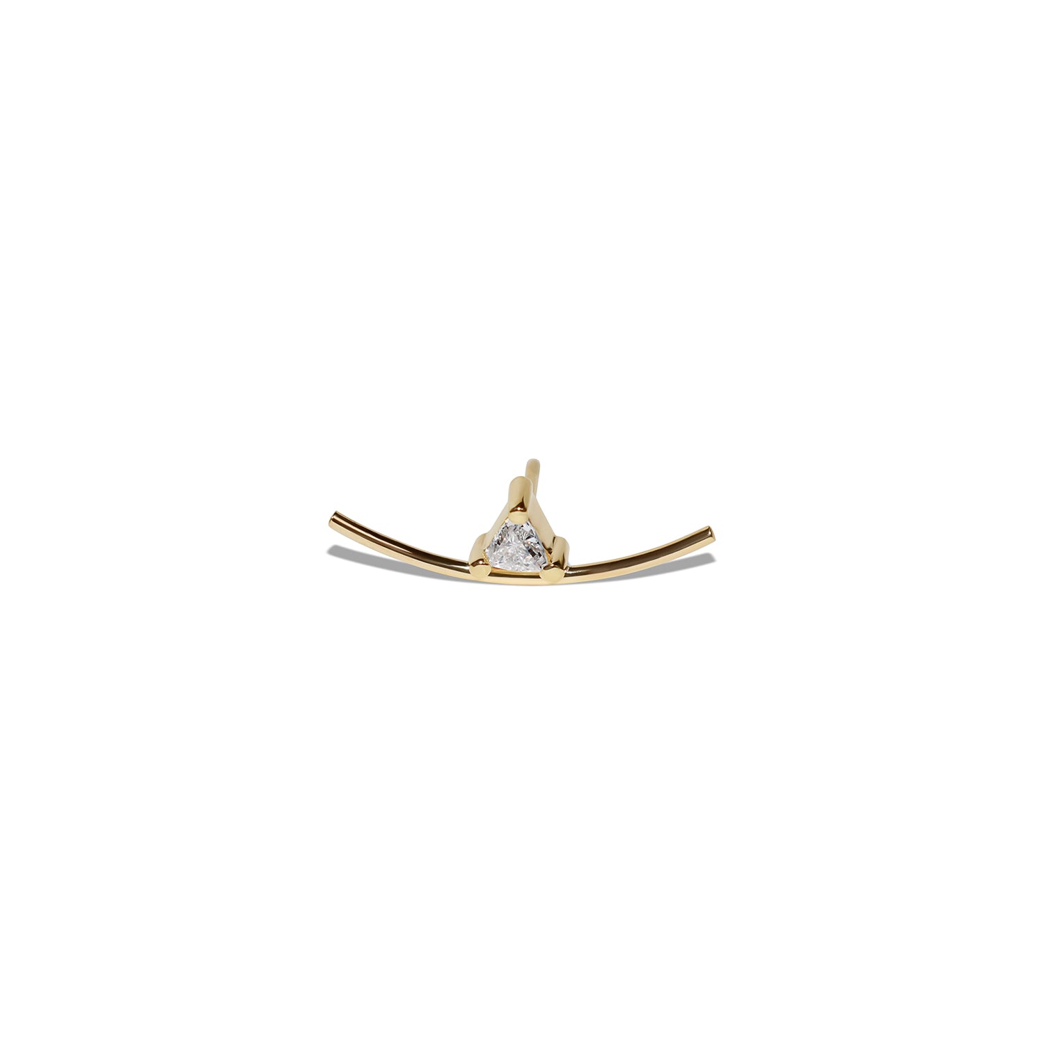 The Element Curve Gold Stud Earring is comprised of a delicate gold curve adorned with triangle cut gem. This style is easily worn on its own or in combinations with others.