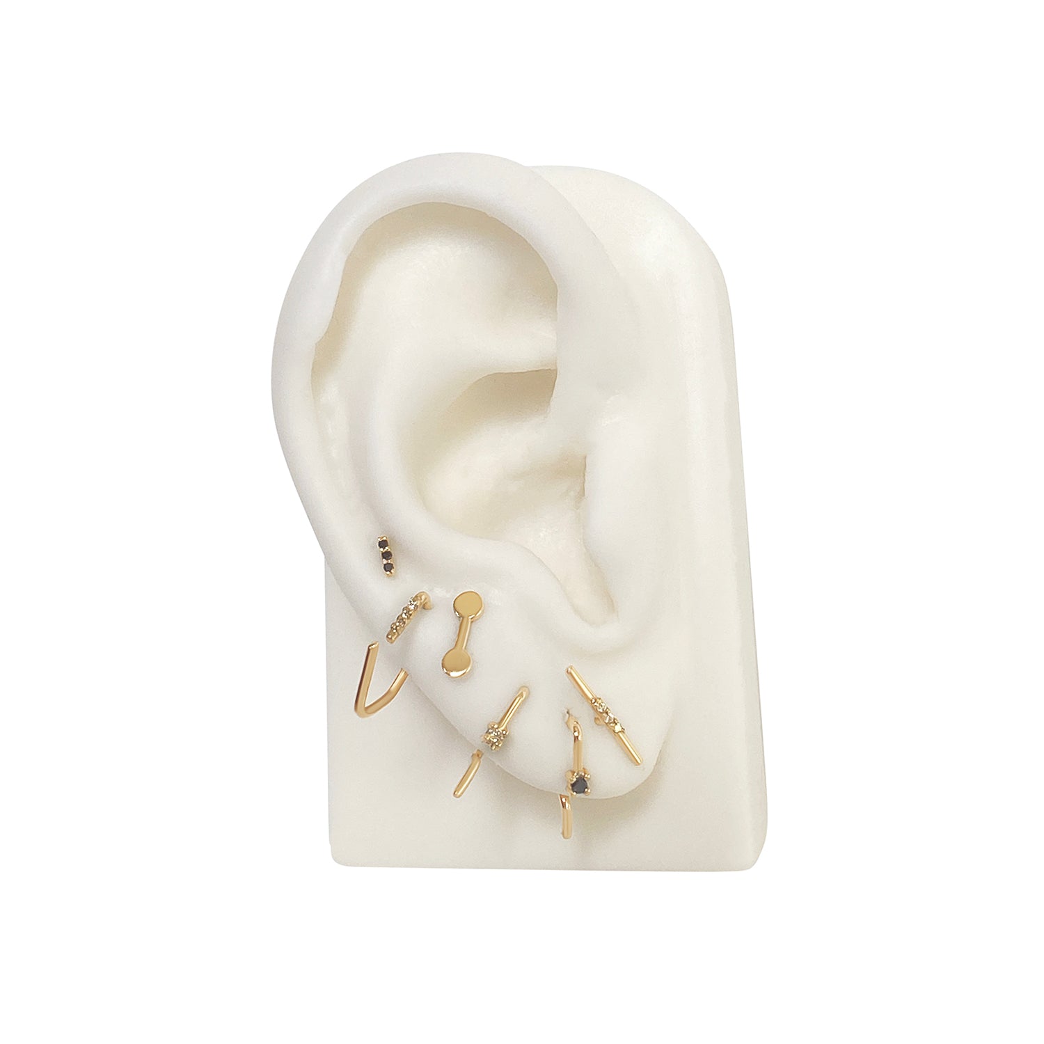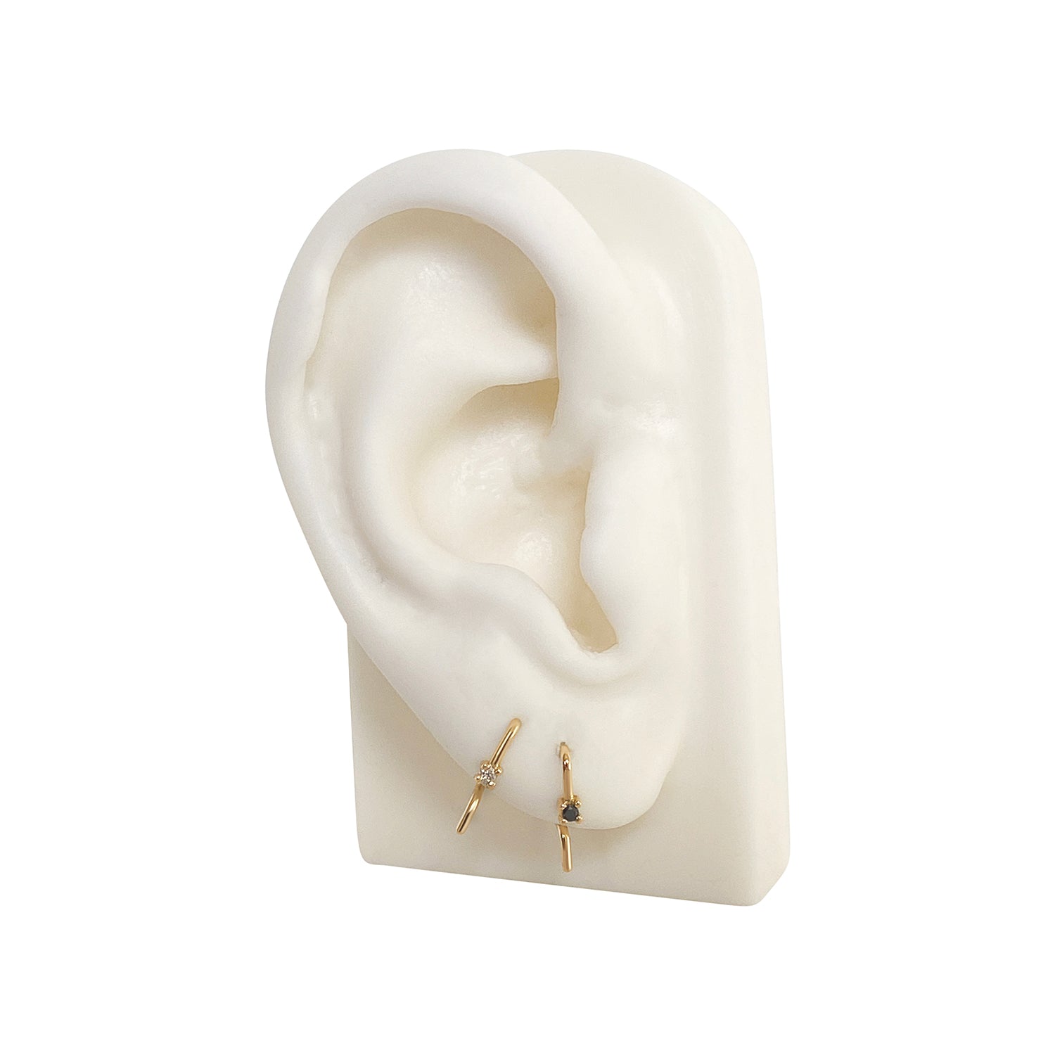 The Black Diamond Tiny Gold Square Open Hoop is a nonchalant earring easily worn threaded through the ear piercing.