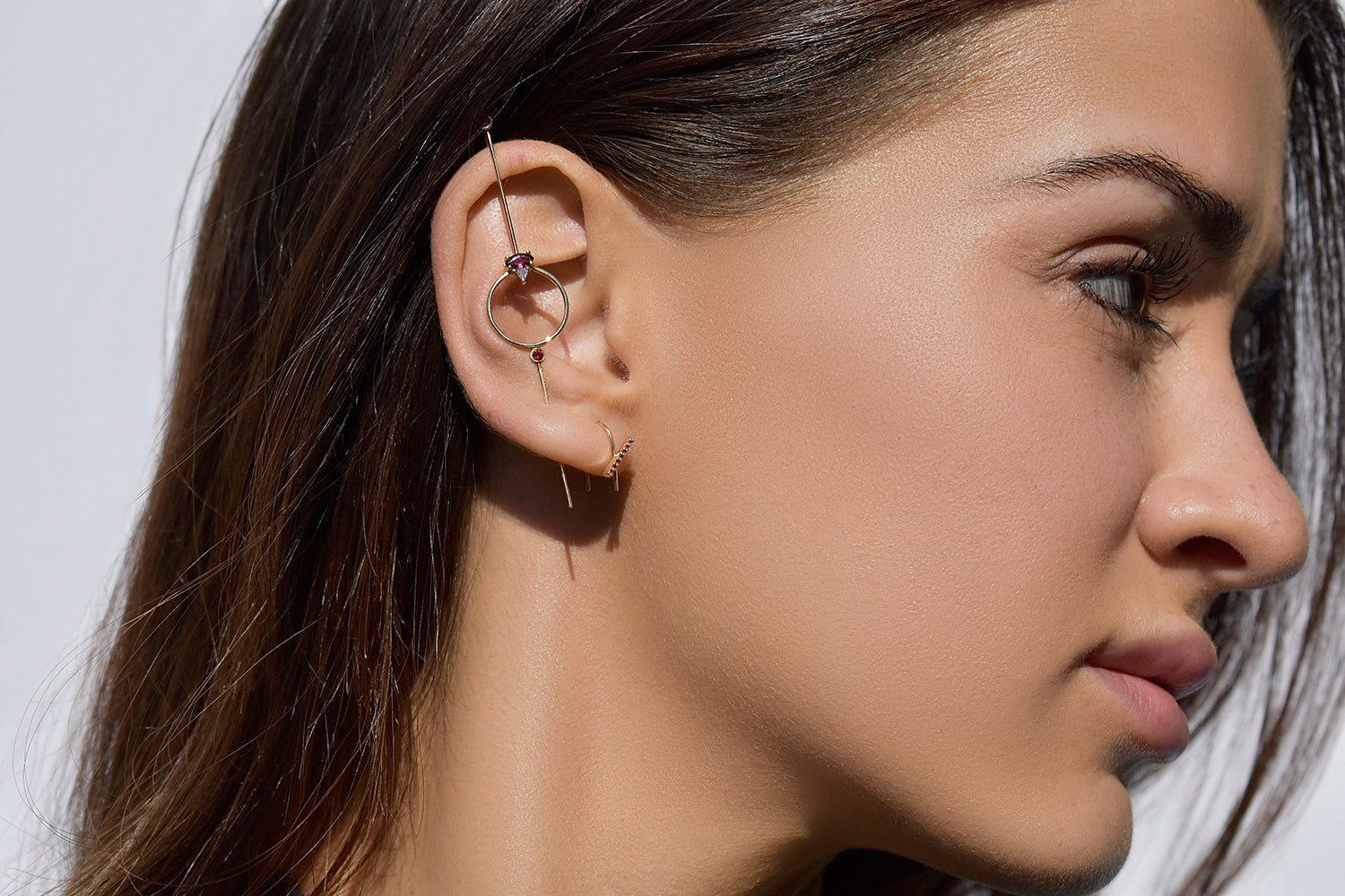 The Horizon Mini Thread Earring is a minimal statement earring that can be worn solo or in combination with other styles.