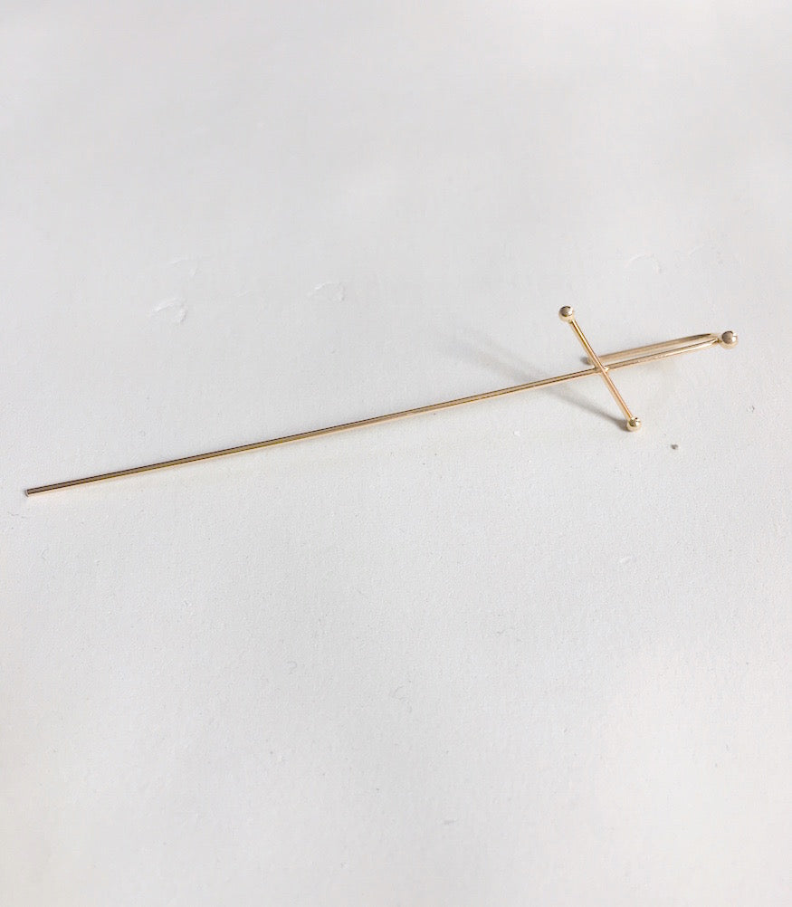 Gleam in refined sophistication with this timeless golden needle earring. With a simple yet classic bar cross design, this luxurious piece will add a touch of unexpected chic to your look. Indulge in a bold beauty with the Simplicity Needle Earring.