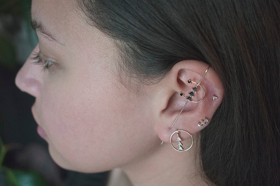 Insert the flat back tube through the back of your ear and insert the front of the earring into the tube. When the two parts meet push them together until they snug securely into one another.