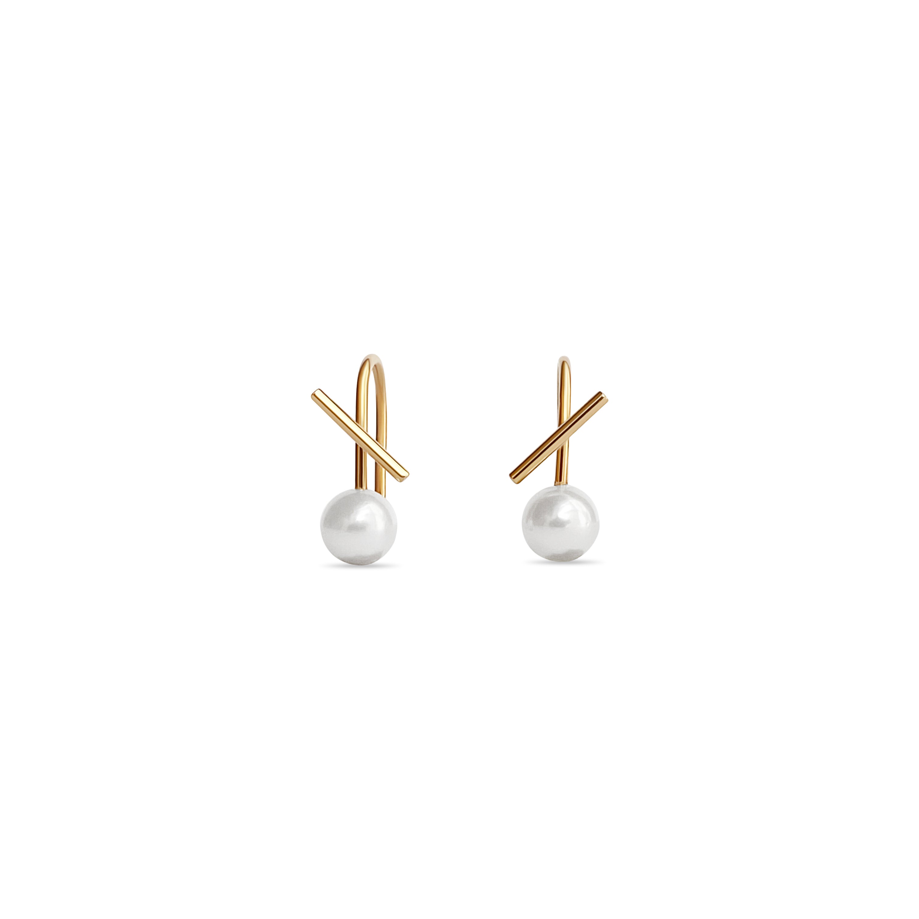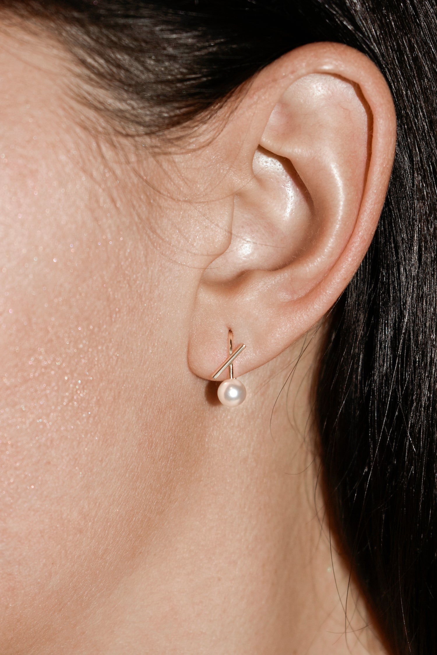 The White Pearl Horizon Mini Thread Earring is a minimal statement earring that can be worn solo or in combination with other styles. The design is effortless yet chic to wear to any occasion.